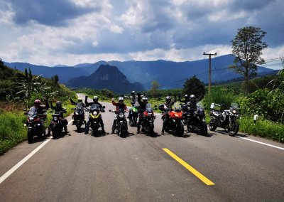 We’ll return to some “regular” roads, but we will still enjoy some twists and turns today. We’ll pass through small towns and beautiful mountain passes. After we pass through the town of Donsai, we’ll drive all the way up to the Laotian border and visit the Chiang Khan Skywalk, where we can gaze out over the Mekong River and across to Laos. From there, it’s a straight route down to Loei. In the evening, we’ll visit a local biker bar.