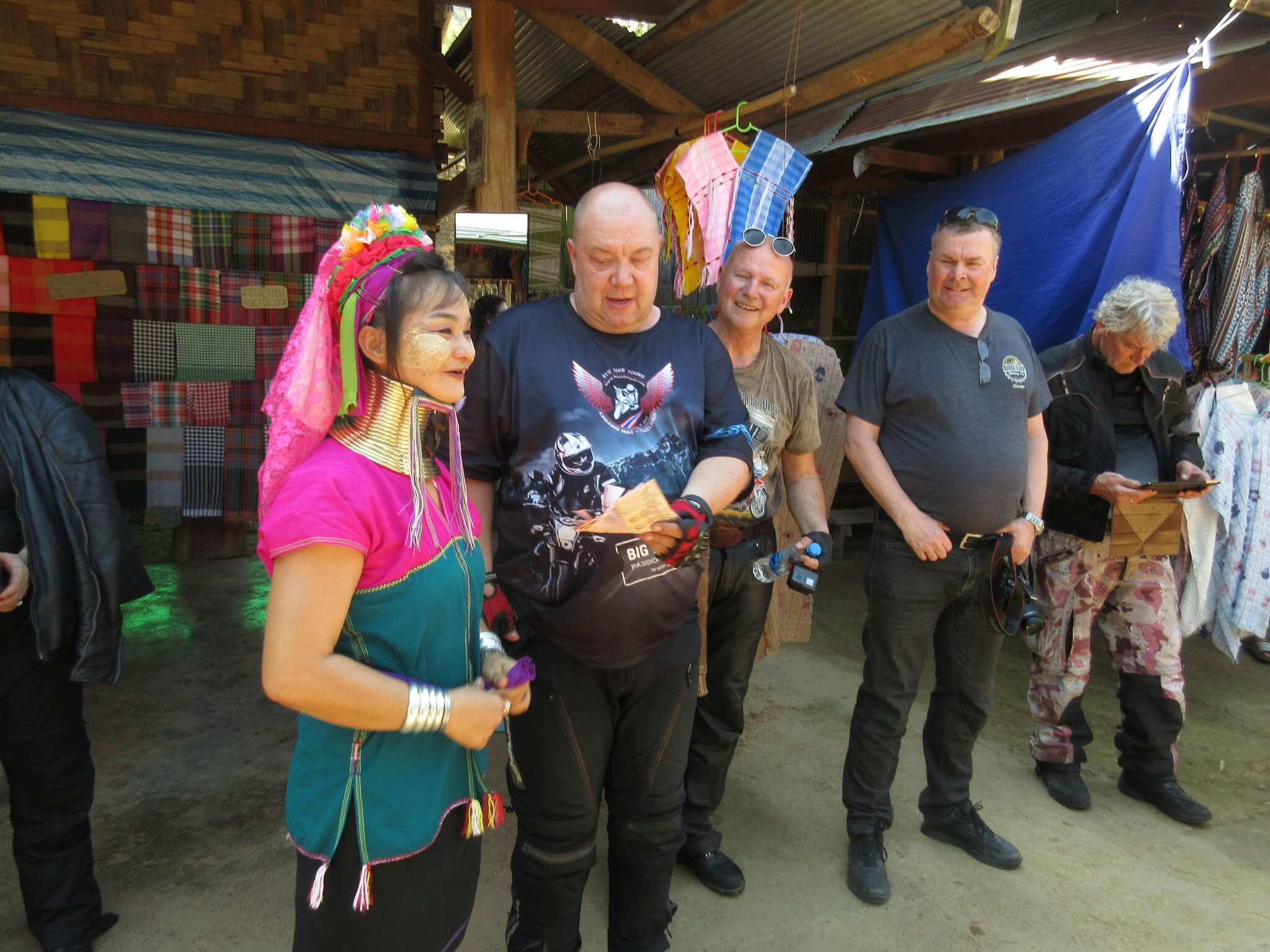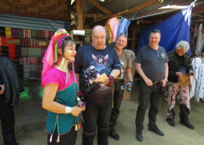 Now we’re truly back on winding roads with beautiful scenery again. It will be a short riding day in terms of distance, as we’ll visit Huay Pa Keng Long Neck Village just before Mae Hong Son. Getting there will take some time since we need to take a boat to reach the village. We will also visit view points and a lot of other interesting sites today.