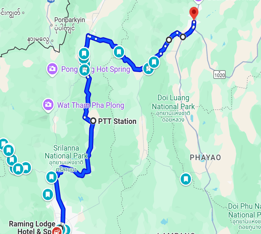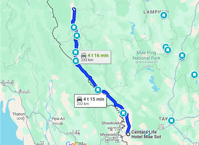 Today, we’ll encounter many agricultural areas and traverse another part of Doi Chong National Park, where we’ll return to the winding roads we’ve experienced before, though not as intense. We’ll also spend 100 kilometers on highways, for some easy relaxing riding. We will get back onto Route 12 towards Mae Sot, a town located right by the Burmese border.